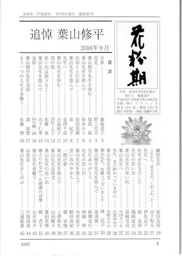 小冊子スタイルの文藝紙『花粉期』(藤蔭道子編集・発行)の号外「追悼 葉山修平」が、9/30付けで発刊されている。葉山修平氏は、みずからの旺盛な創作活動とともに、千葉朝日カルチャーセンター、金沢読売文化センター、NHK文化センター柏教室、読売文化セ…