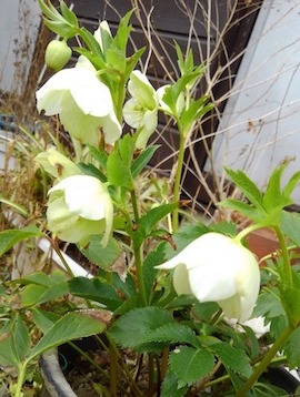 2019-03-11 春咲きクリスマスローズ開花 庭の鉢植えの春咲きクリスマスローズ(レンテンローズ)が開花した。連れ合いがだいじに育ててきた鉢植えの一つで、枯れないよう寒い冬のあいだも慎重に水遣りをしたので嬉しい限り。地植えのクリスマスローズが咲くのはまだこれから。写真は、不慣れなスマホによる撮影で、画像の精度は悪い。